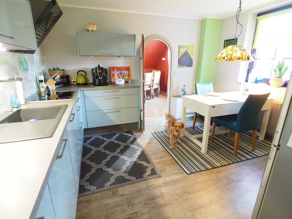 - Einliegerwohnung: Wohn-/Schlafzimmer mit offener Küche, Duschbad