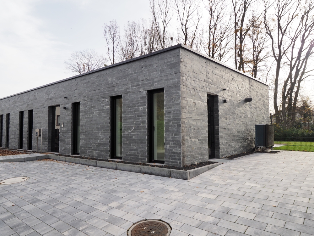 - 50er Außenwände Ytong, 8 cm Dämmung, spezial Putz / Naturschiefer Aussenfassade