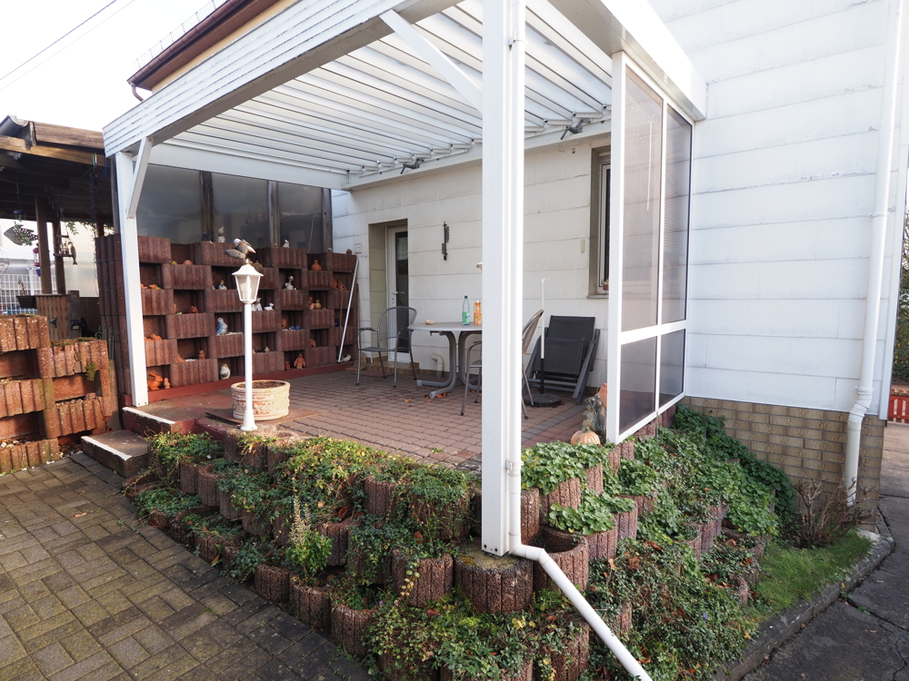 - EG: Wohn-/Esszimmer, Küche, Flur, überdachte Terrasse