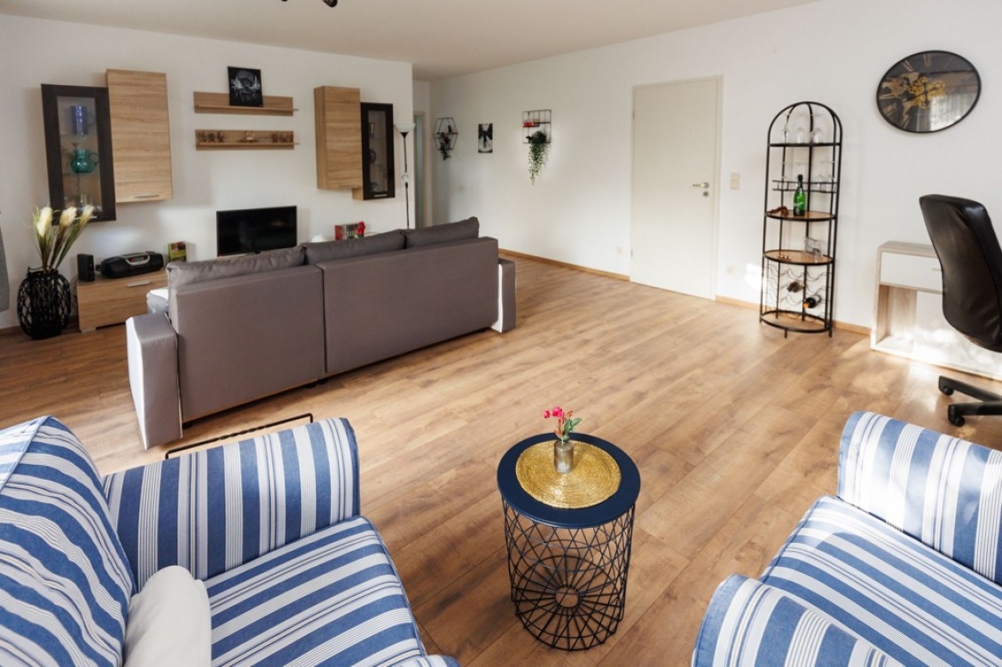 Gartenetage: großes Wohn-/Esszimmer, angrenzende Küche mit Abstellraum, Schlafzimmer, Badezimmer, Diele